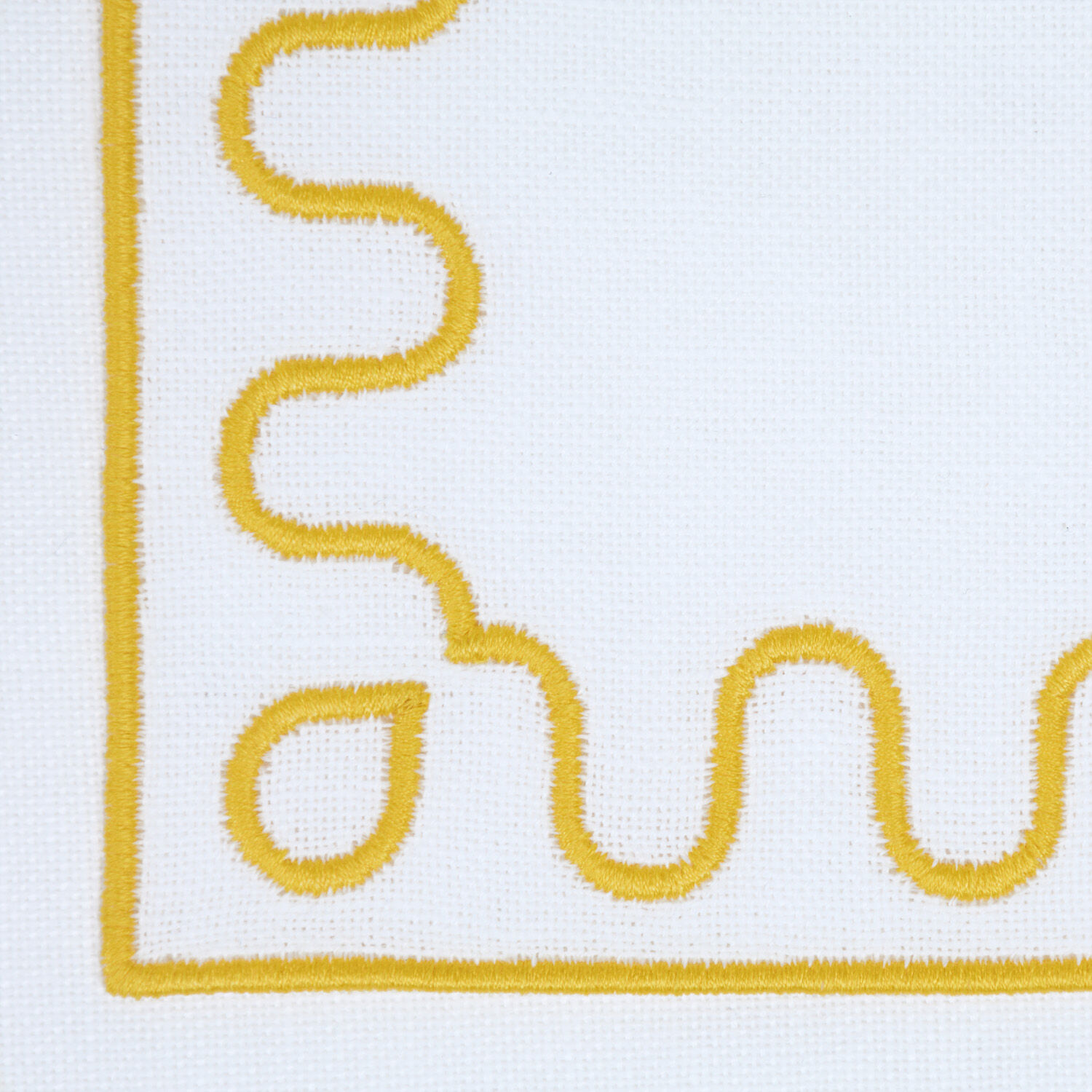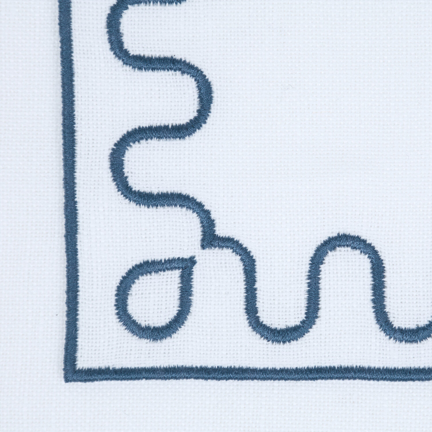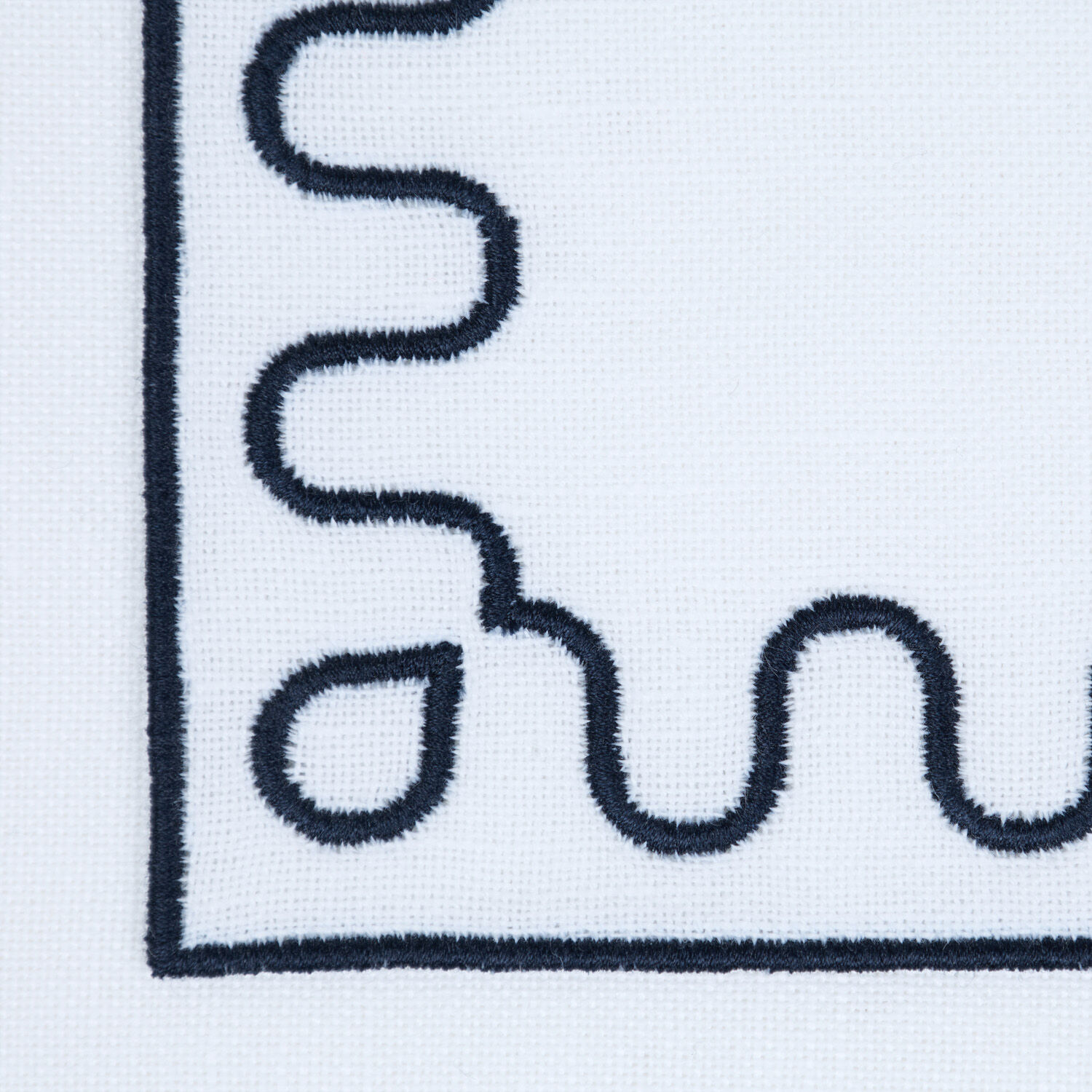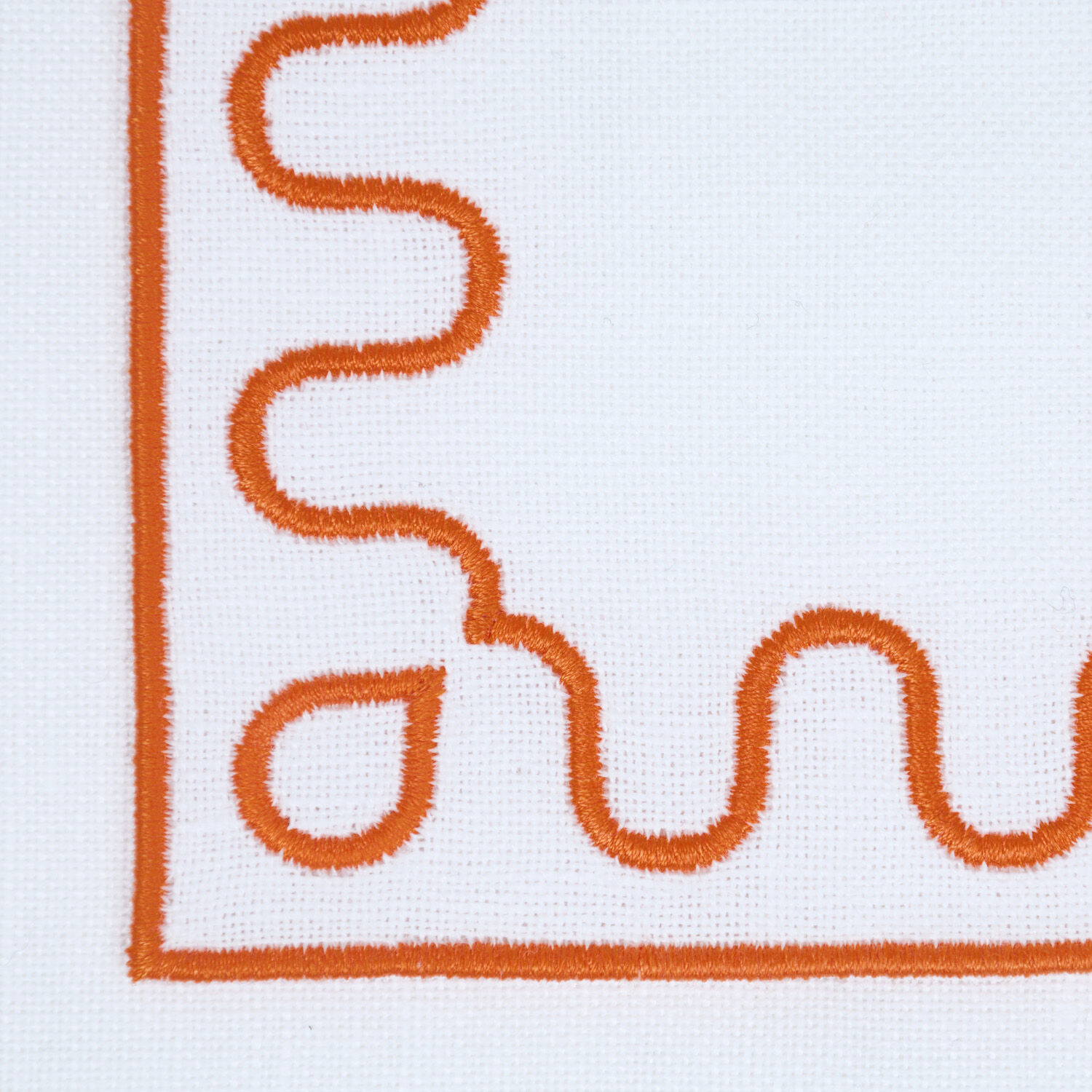 A contemporary set of four coasters in a cotton-linen blend, featuring a Modernism outline embroidered frame developed with Tara Bernerd.
